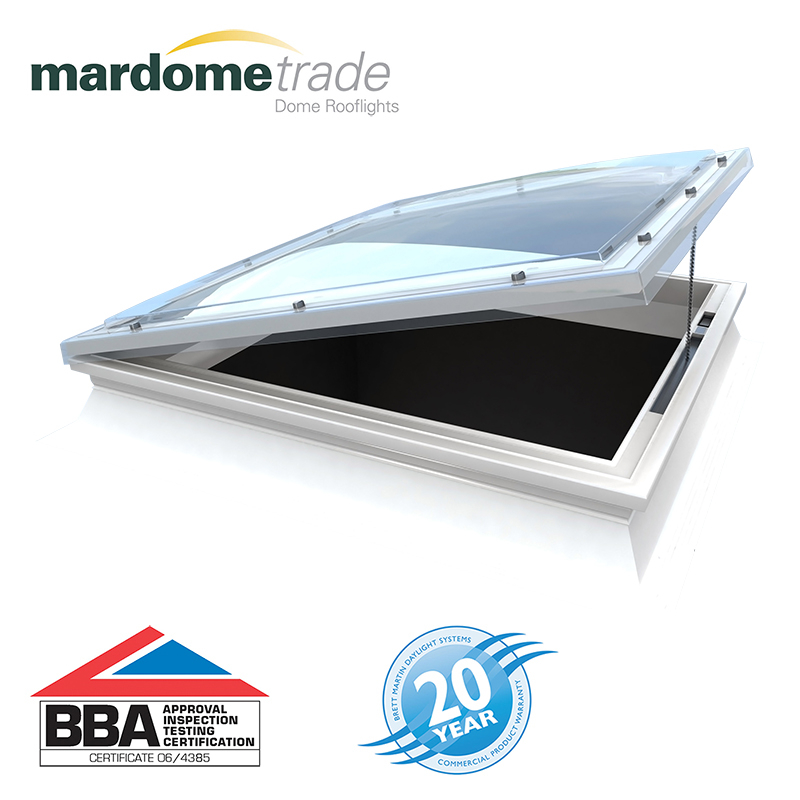 Mardome Trade triple skin rooflights come with a kerb, dome and insulated PVC upstand. Fitted with Marlon FSX Longlife polycarbonate glazing that’s impact resistant and 200 times stronger than glass, you get up to 98% UV protection and the rooflight achieves a u-value of 2.7 W/Mk.