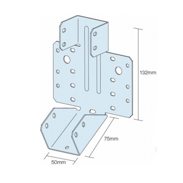The Simpson Strong - SPR50 Slope Adjustable Hanger supports joists or rafters from other timber members and can be sloped up or down to 45 degrees. The slope of the sloped joist hangers can be adjusted on site. It can support a range of 47mm timber heights from 145mm to 200mm and is fixed using 3.75 x 30mm square twist nails.
