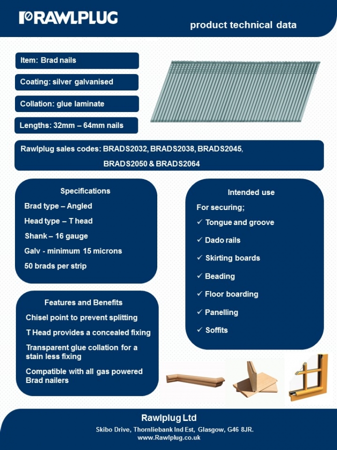 50mm x 1.6mm Silver Galvanised Angled Brad Fuel Pack - Box of 2000 Applications • 2 Fuel Cells • Installation of wooden facades and other external trim applications • Installation of soffits and other roof finishing elements • Installation of timber decora... Read More