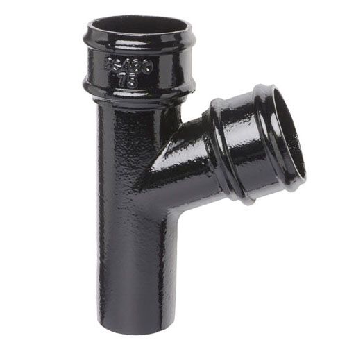 Cast Iron Round Downpipe 112.5dg Branch 65mm - Black Finish