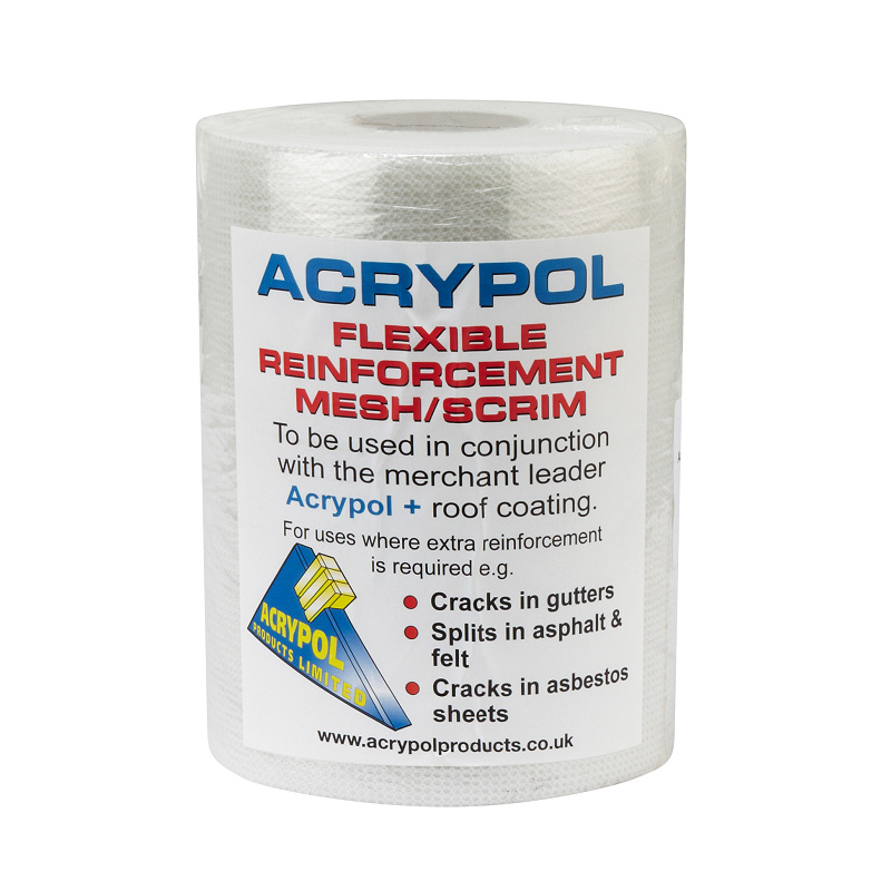This 150mm x 20m Acrypol Flexible Reinforcement Roofing Mesh/Scrim serves as a versatile solution to enhance Acrypol+ applications by effectively bridging significant splits and cracks in roofs and gutters. This roofing scrim showcases remarkable strength, providing support even over holes in roof sheets when used in conjunction with Acrypol+.