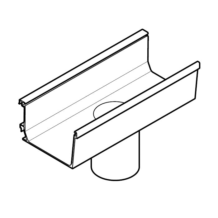 The box white running outlet is used to connect a box profile gutter run to a downpipe, in order to transport the rainwater into the drain. The running outlet is available in a number of different designs, to ensure that the outlet is the correct shape to fit your downpipe. The running outlet connects easily to the box profile gutter, and a regular box profile gutter joint is used to make the durable connection.