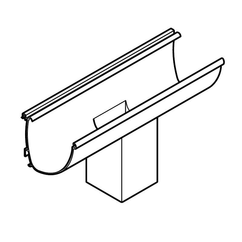 The metallic silver modern running outlet provides a connection between the roofline gutter and the downpipe. The modern profile running outlet is available with a number of different outlet shapes to allow the outlet to connect to various different downpipe shapes. The running outlet can be easily connected to modern gutter runs or stop ends using standard modern gutter joints and union clips.