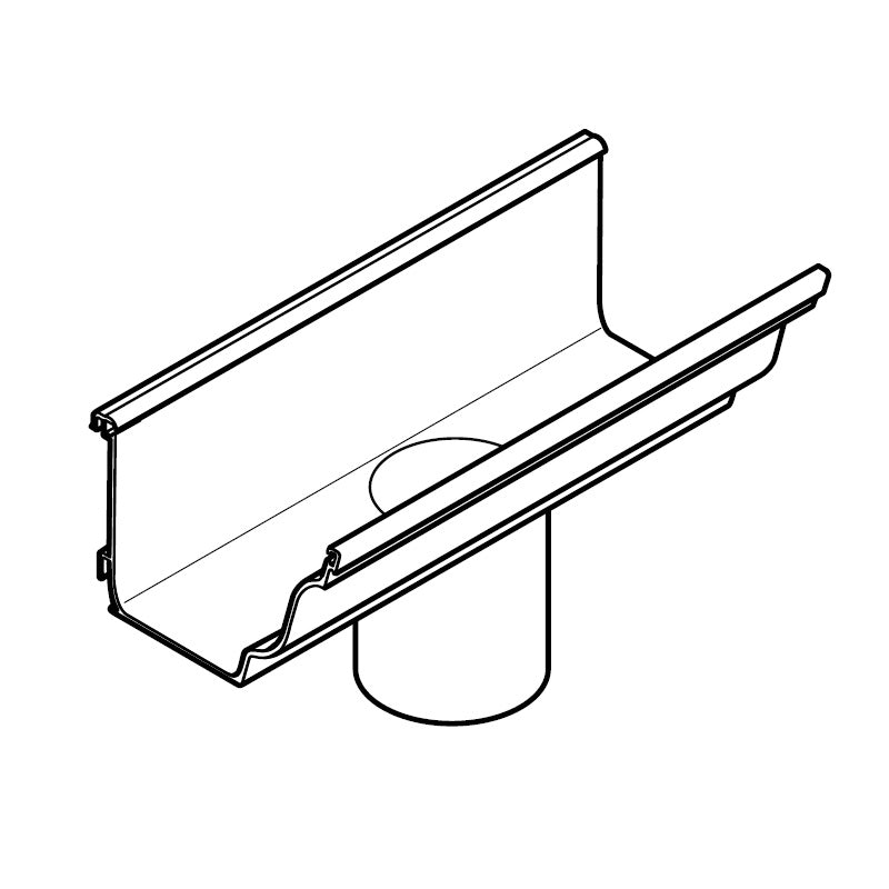The metallic silver moulded running outlet is manufactured to provide a connection between the roofline gutter and the downpipe. The running outlet is fitted into the gutter run as if it was a normal piece of guttering, so with union clips, and then the downpipe fits onto the outlet itself. The running outlet is available with a number of different shaped outlets, so it is important to select the correct running outlet for your downpipe shape.