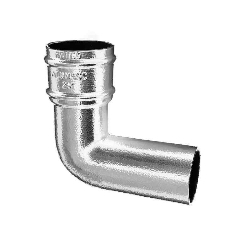 Aluminium Guttering Round Downpipe 92.5dg Bend 63mm - Plain