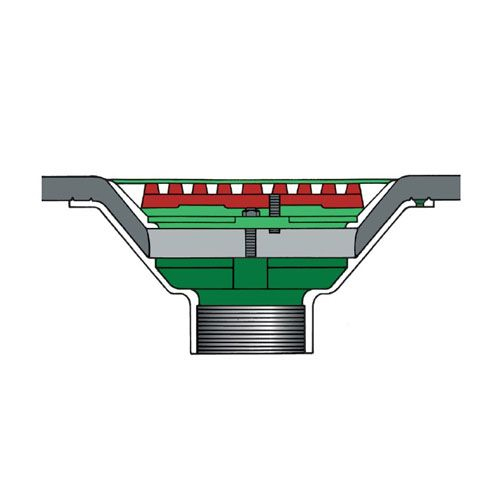 Female parallel threaded, this aluminium roof outlet can be applied with a foamed insulation coating for "warm-roof" insulation, much like gunmetal vertical threaded outlets.
