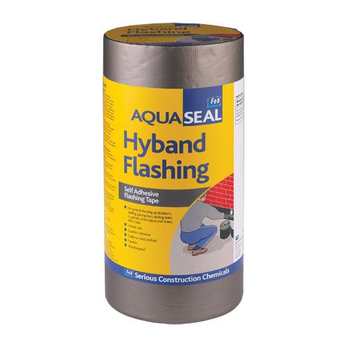 Hyband flashing is a heavy duty metal foil coated with a layer of bitumen based, pressure-sensitive adhesive protected by a quick release backing. It is readily applied by hand pressure and it's watertight grip grows stronger with time to ensure lasting adhesion and is flexible enough to mould to background contours, upstands and angles.