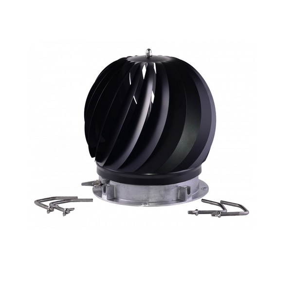 Stainless steel turbine head, cast aluminium base. Easy fit using four stainless steel hook bolts and wing nuts. Twin high temperature (up to 200°c) oil filled bearings for a smooth, quiet operation. Only requires a wind speed of 4mph to start turbine head rotating