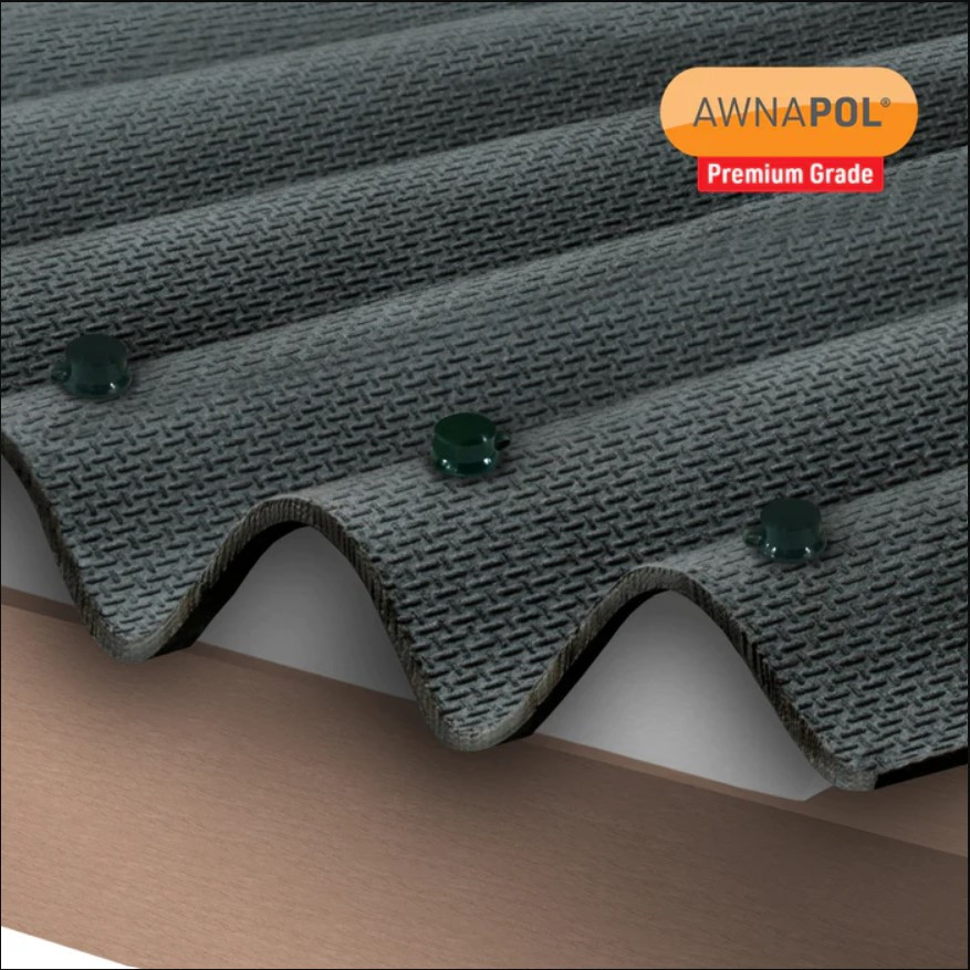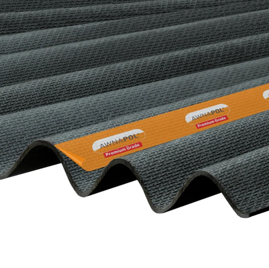 A heavy-duty alternative to Clear Amber's Corrapol®-BT sheets, the Awnapol® Premium Corrugated Bitumen Sheet brings a rigid and high-end finish suitable for various roofing projects, including shed roofs and garages.