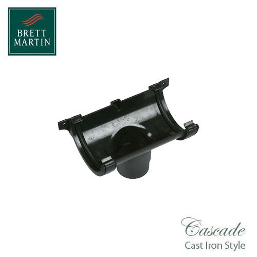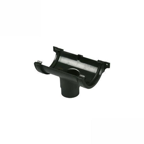 Cascade Cast Iron Style 112mm Plastic Roundstyle Running Outlet - Black Provides an outlet to the downpipe for rainwater along the length of guttering. Unlike a stop end outlet it connects to a guttering run at both ends. The Roundstyle Cast Iron Style Rainwater System is s... Read More