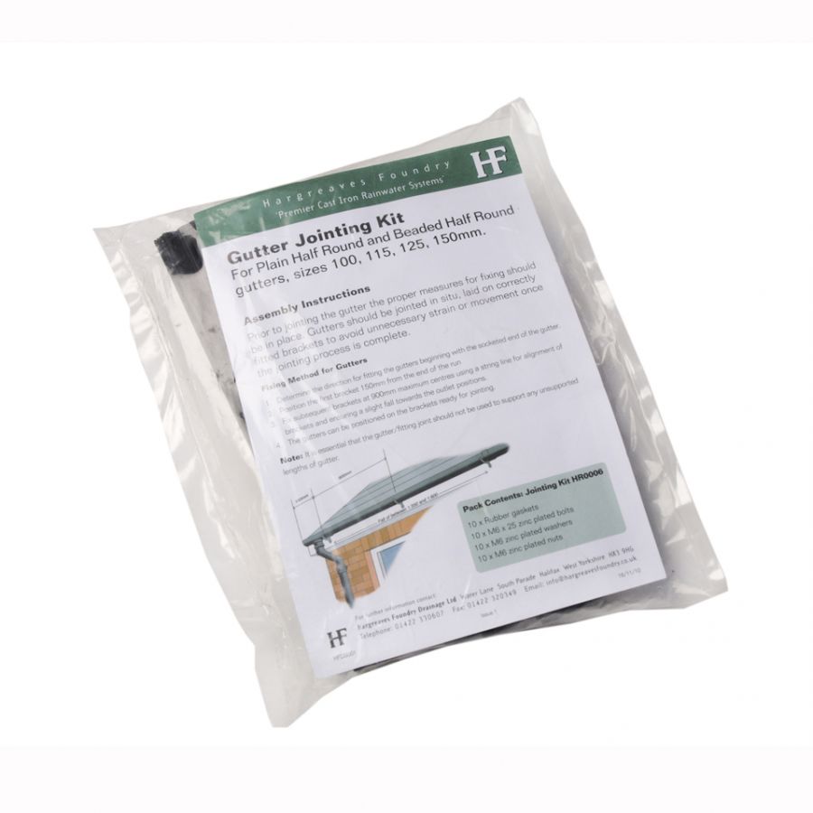 With 10 bolts, washers, nuts, and rubber gaskets, this gutter jointing kit is made by Hargreaves Foundry. It is perfect for securing connections between guttering products and fittings in plain or beaded half round rainwater systems.