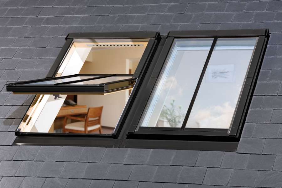It's characteristic feature is the sash bar down the middle of the window, and black (similar to RAL 9005) metal covering on the window and flashing which is designed to suit traditional buildings.