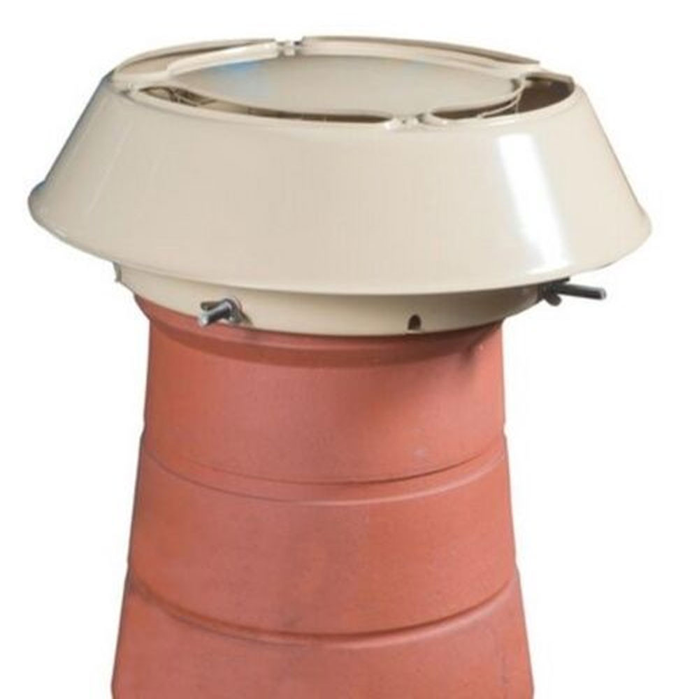 Manufactured from aluminium and coated with a powder in a Buff colour, this static anti-downdraught cowl includes stainless steel strap fixings, a birdguard, and standard hook bolts. The Buff colour coordinates well with specific chimney pots and buildings with a limestone/sandstone appearance.