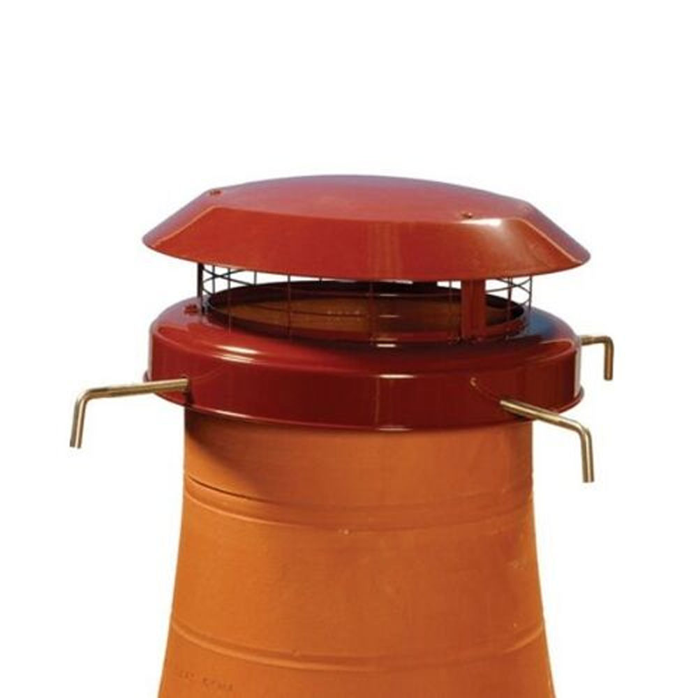 • Corrosion resistant powder coating in terracotta colour matches well with most chimney pots