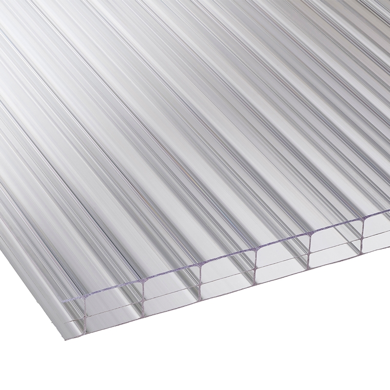 This clear Triplewall roof sheet enables maximum light capacity for your installation. Lightweight yet impact-resistant, it is easy to handle, cut and fit without cracking or shattering. Providing great thermal insulation and energy efficiency with a U-value of 2.4W/m²K, this robust polycarbonate sheet is quick and simple to wash.