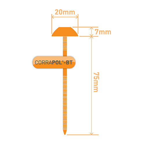 Ideal for making watertight and stable installations in a range of challenging roofing projects, these Corrapol-BT® plastic-headed nails are a smart, no-nonsense fitting. Available in various colours that match their bitumen corrugated sheets, these Corrapol nails are easy to install, working efficiently and affordably for a plethora of roofing applications, coming in packs of 100. This pack has bright red coloured heads.