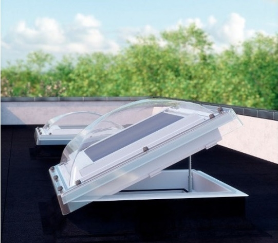The domed flat roof window is intended for installation in a flat roof with a pitch between 2° to 15°.