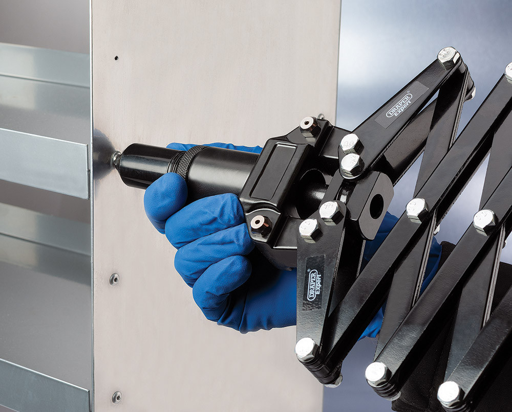 Ideal for heavy-duty riveting tasks, this Draper Lazy Tong Riveter is designed with expert craftsmanship and a concertina-style build. This riveter makes repetitive jobs a breeze and is built to last, so you can use it with aluminium, stainless steel or steel blind rivets without worrying about wear and tear.