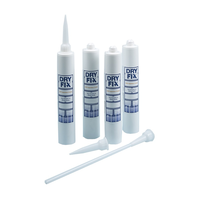 DryFix DPC Damp Proof Injection Cream can be injected directly into a mortar course in cavity and solid brick walls. The cream is BBA-approved and is manufactured of a silane-based cream, one that contains a resin activated by the moisture within mortar. After injecting the cream into pre-drilled holes in the wall, the resin and moisture will react, forming a pore liner. When the cream is cured then the wall is damp proof.