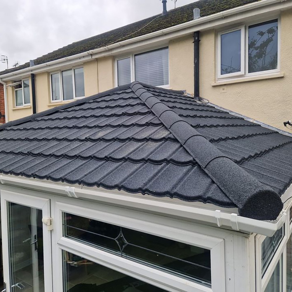This Lightweight Tile can be used for the over-roofing of asbestos, new builds and traditional properties, converting flat roofs to pitched roofs, felt or industrial sheeting, prefabricated buildings, as well as stables, outbuildings, carports, porches, sheds, conservatories, garages and summer houses.