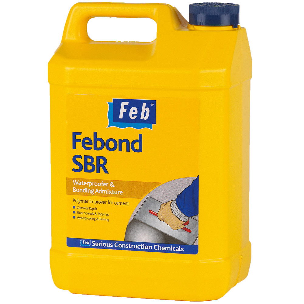 Febond SBR is a styrene-butadiene co-polymer latex specifically designed for use with with cementitious mixes and as a reliable water resistant bonding agent. Ideal for concrete strengthening and repair, floor screeds and toppings, waterproofing and tanking.