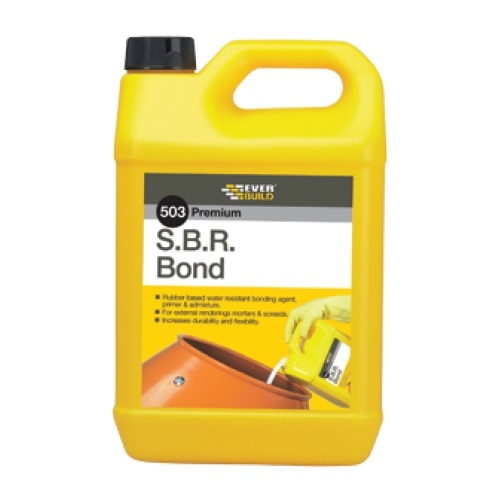 Everbuild SBR Bond is a latex based, water resistant bonding agent and admixture for use in areas subject to humidity, dampness and continuous water contact. Improves water resistance of cement mixtures by forming a reinforcing polymer that increases long term durability and flexibility of the mix on renderings and floor screeds.