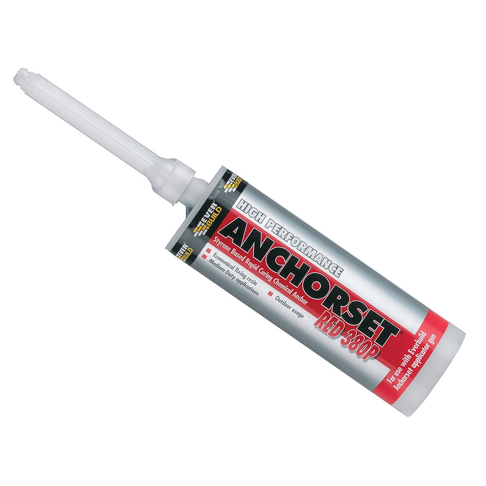 Everbuild Anchorset Red 380P Polyester Resin - 380ml Anchorset is a rapid curing one shot two-part chemical anchoring cartridge system based on an unsaturated polyester resin in styrene. Applied in one single action to produce a cost effective, tough, chemical resistant fixin... Read More