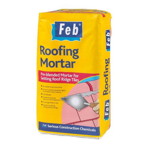 Feb Pre-blended Roofing Mortar - 20kgRoofing mortar is a water repellent, thixotropic pre blended mortar, for setting roof ridge tiles, with improved wetting and adhesion properties. It contains an insoluble hydrophobic ingredient for permanent water repellency. An added air-e... Read More