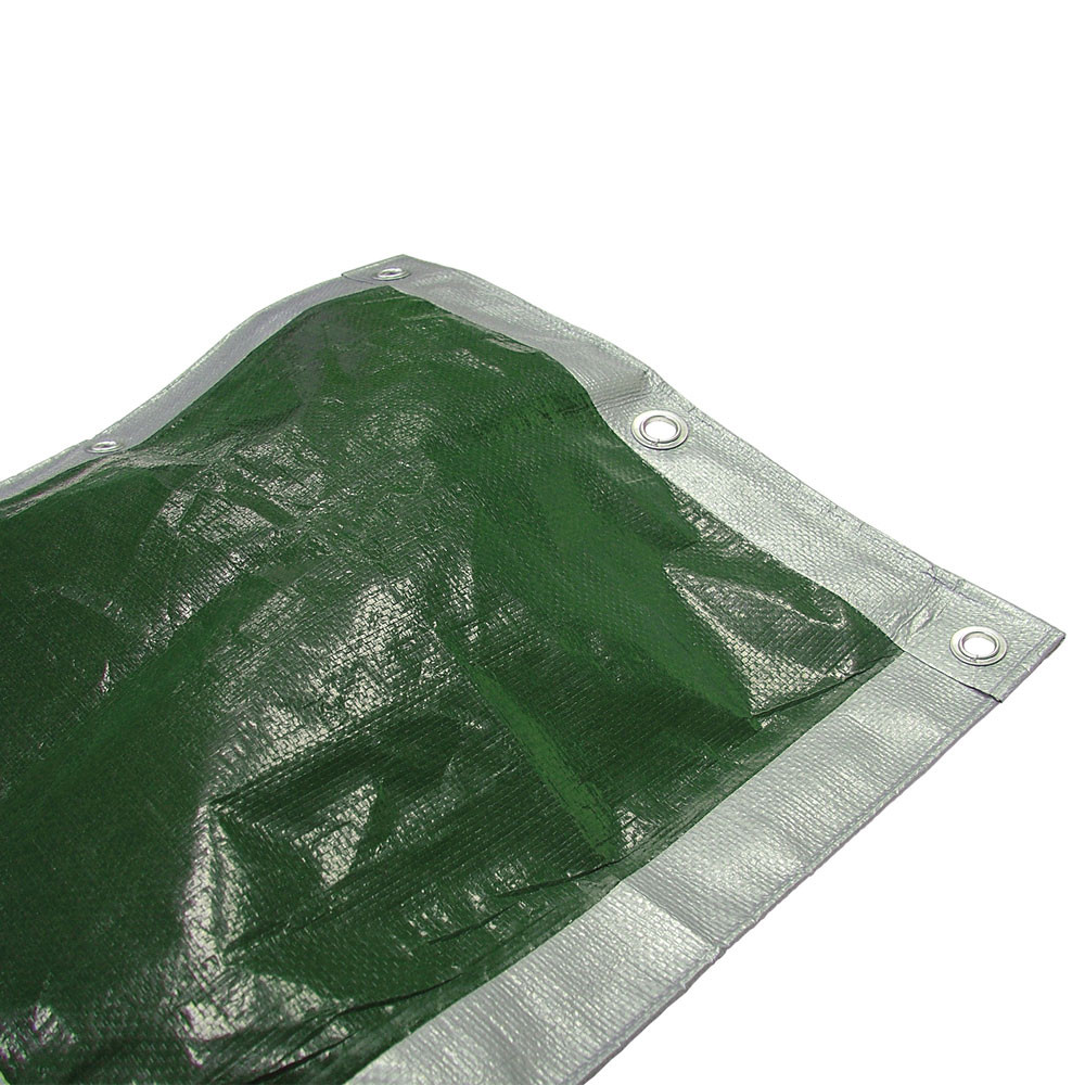 The FAITHFULL Heavy Duty Green and Silver Tarpaulin is re-usable, tough and waterproof.