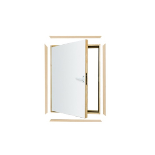 The DWF fire-resistant L-shaped combination doors are intended primarily for installation in vertical walls. These doors ensure access to non-habitable rooms located behind vertical wall as well as protect for 45 minutes against the spread of fire (classification as per EN13501 – EI145). The DWF L-shaped combination doors are universal, hence they can be installed with left as well as right direction of opening. Sash with a thickness of 6.6.cm made of pinewood veneered on both sides with HDF board in white filled with mineral wool.