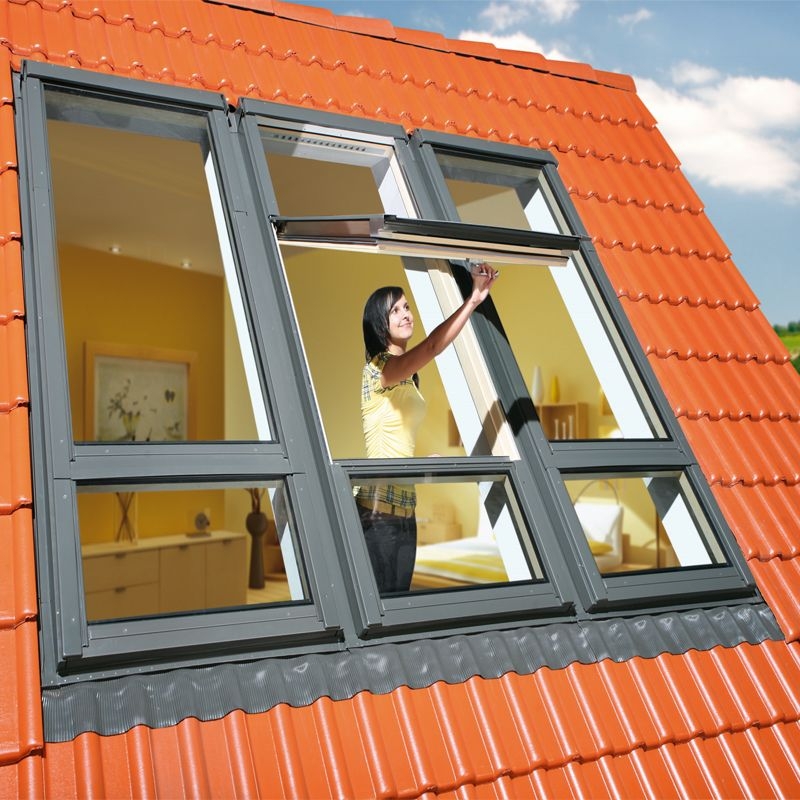 The FDY-V P2 window eliminates the need for vertical combinations, hence offering larger glazing area. The upper window is operated by means of a handle situated in the lower part of the sash which provides a two-step micro-opening facility. The window is equipped with an automatic air inlet V40P which supplies the optimum amount of air into the room. The sash can be rotated through 160° and blocked for washing with the use of a bolt.
