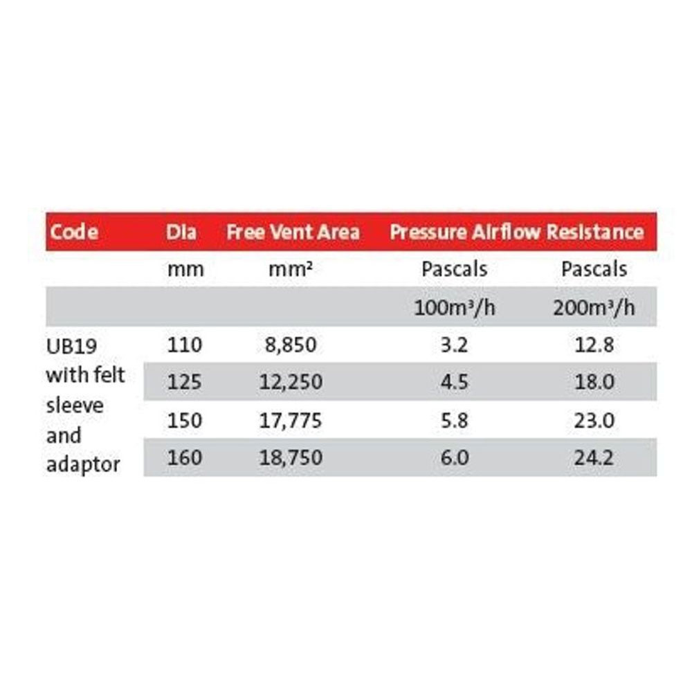 These convenient plastic adaptors from Ubbink allow the on-site conversion of UB19 Tile/Slate vents to service terminals. The felt sleeve click-fits in place into the underside of the UB19.  The stepped adaptor is cut off at the required diameter and then pushed onto the sleeve. The joint between the felt sleeve and adaptor should be sealed with PVC solvent weld.