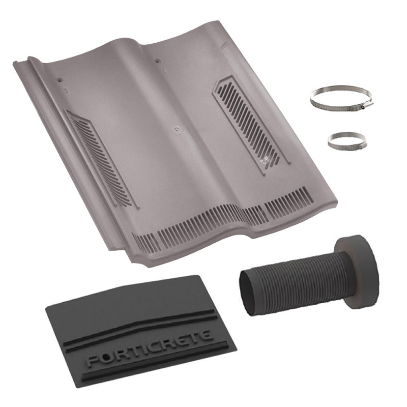 When installing this kit, a minimum spacing of 600mm should be kept between vent tiles in any direction. The vent tile should be nailed into position and secured using one tile clip following BS 5534 standards. The Forticrete PAN8® concrete roof tile combines all the visual characteristics of traditional pantiles while ensuring improved features compared to other interlocking tiles on the market.