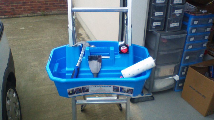 all round general purpose tool caddy, fits easily and safety over ladder rungs and keeps your tools and equipment safe and to hand.