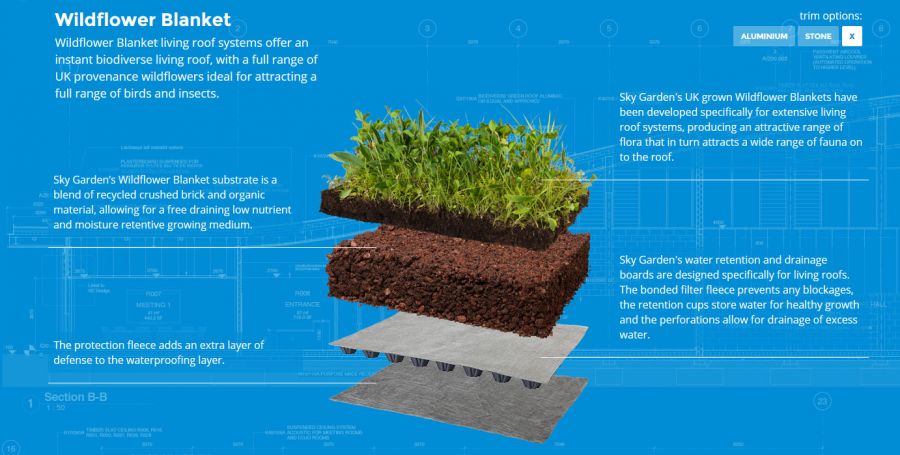 As the perfect option for bringing colour and biodiversity to your building project, this Sky Garden wildflower blanket roof system has matured for over a six-month growth period. This is so that it can be delivered to you healthy and lush, offering a stunning wildflower look ... Read More