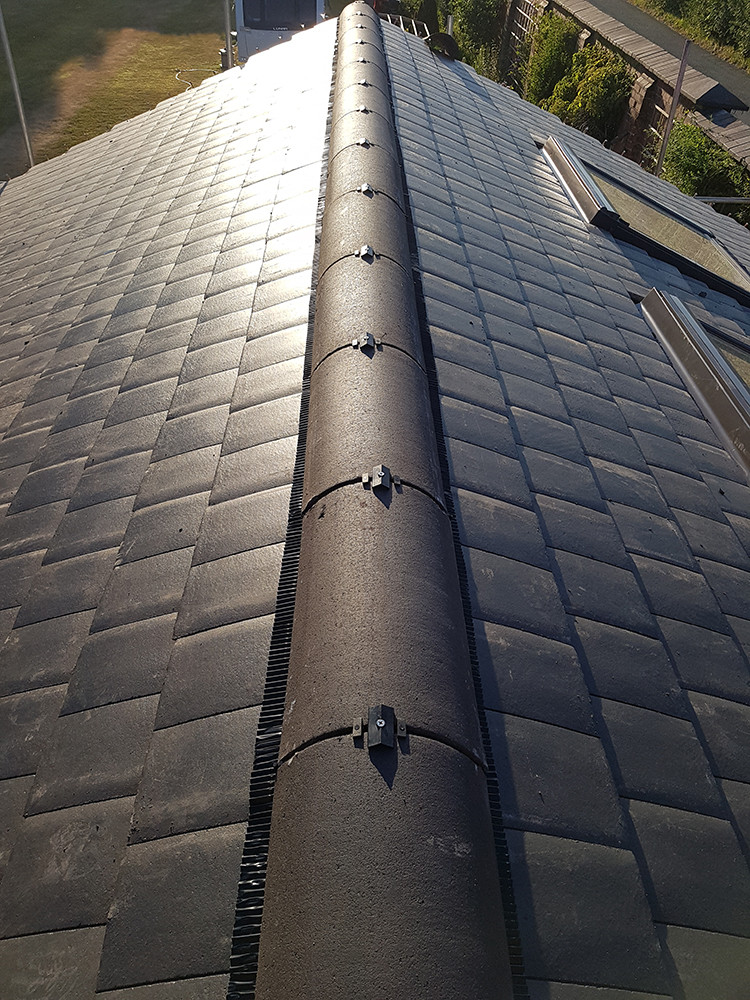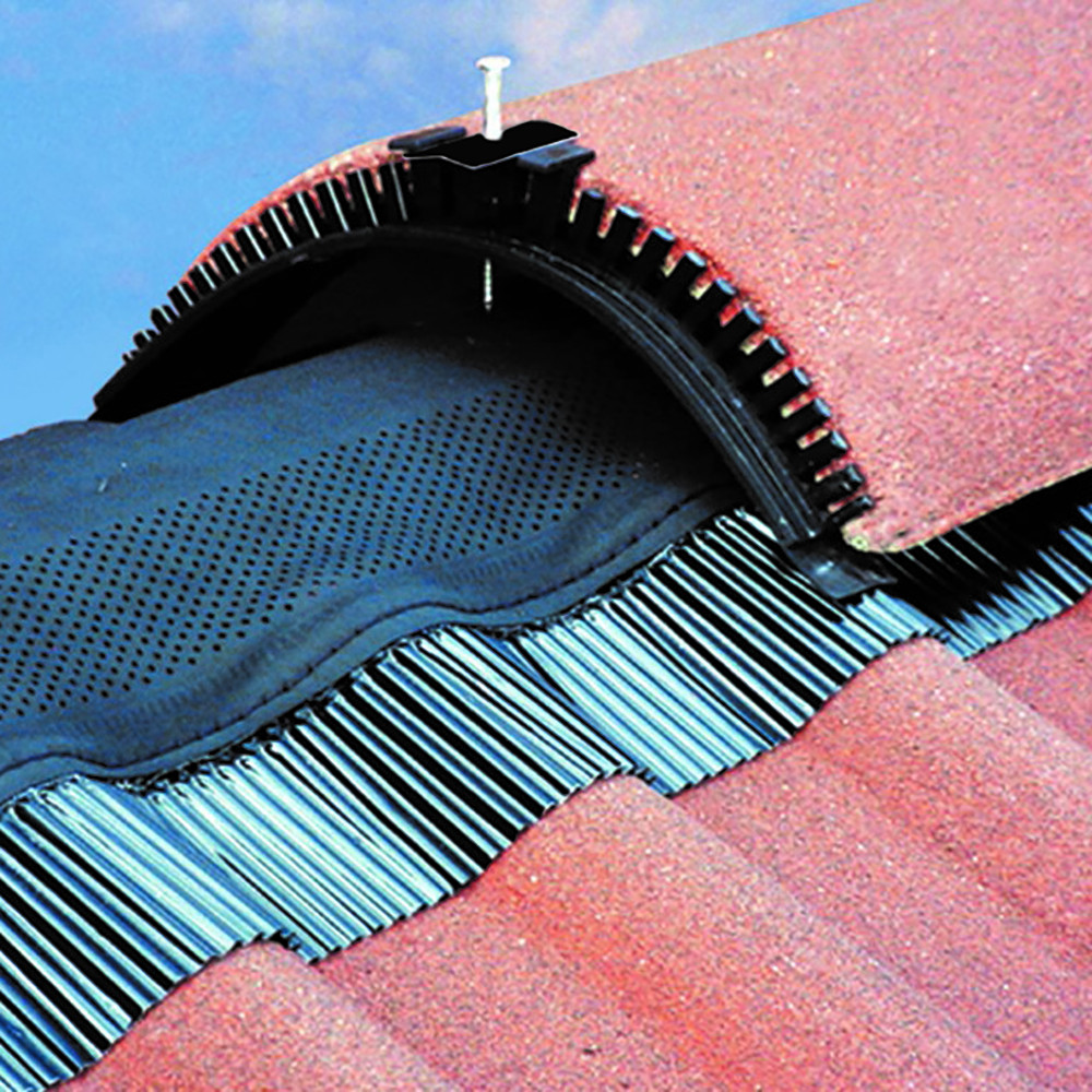 Created to accommodate a wider range of ridge and hip tile types and roof pitches than alternatives on the market, this Dry Fix Roll Out Ridge and Hip Vent System from Hambleside Danelaw has a unique universal design that is adaptable to fit all standard ridge tile and slate types.