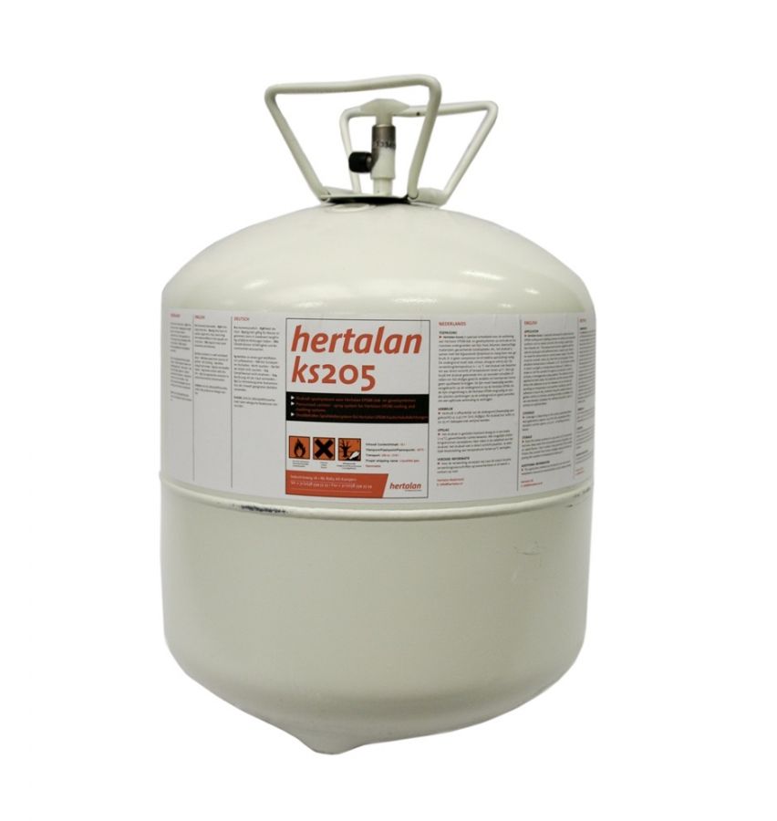 A 3m or 5m hose is available, designed specifically for use with this canister. You can choose between Hertalan's KS205 application gun and Hertalan's KS205 application lance for your adhesive application. Weighing 14.2kg, this canister offers a substantial 18 litres of contact adhesive, providing approximately 200g/m² coverage when applied on both sides.