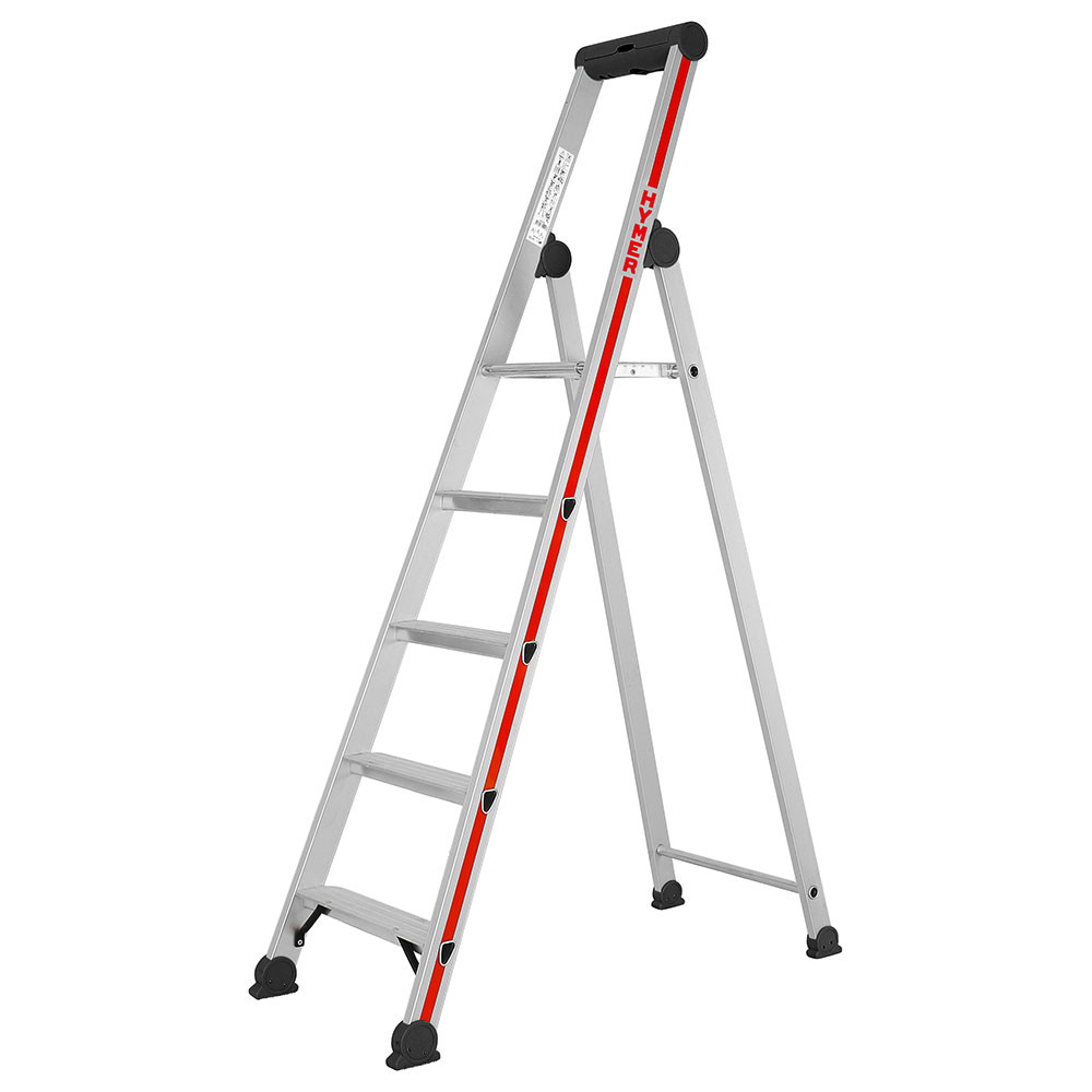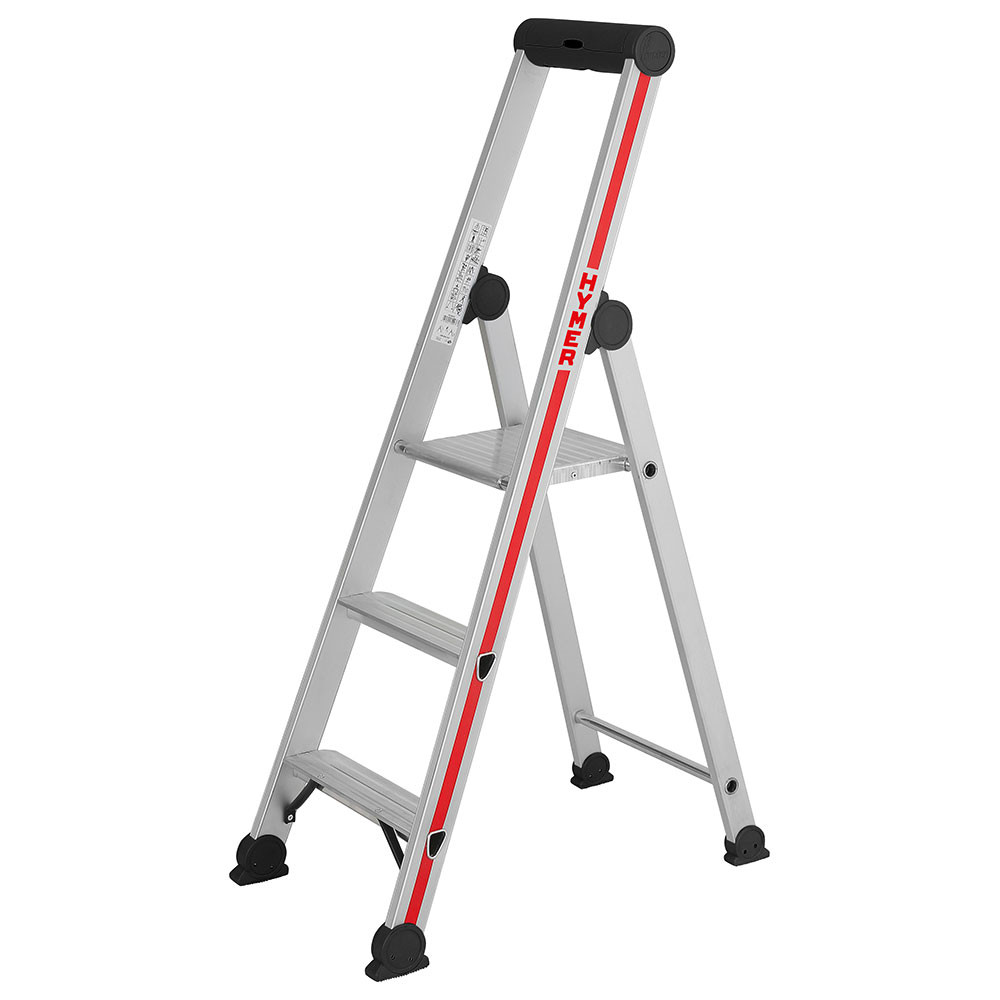 The platform has an anodised finish to help keep your hands clean, whilst the sizeable non-slip end caps and reinforced braces located below the bottom rungs provide strength and stability. With a 150kg rating, these Hymer 4026 steps can safely hold you and your tools.