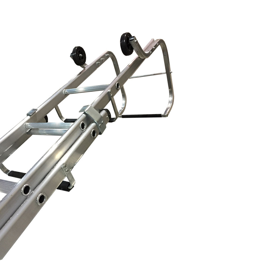 This Double Extending Roof Ladder is manufactured using industrial strength aluminium and is suitable for heavy-duty work with a maximum safe load of 175kg. It has strong oval section stiles and non-slip rungs that incorporate a heavy-duty ridge hook.