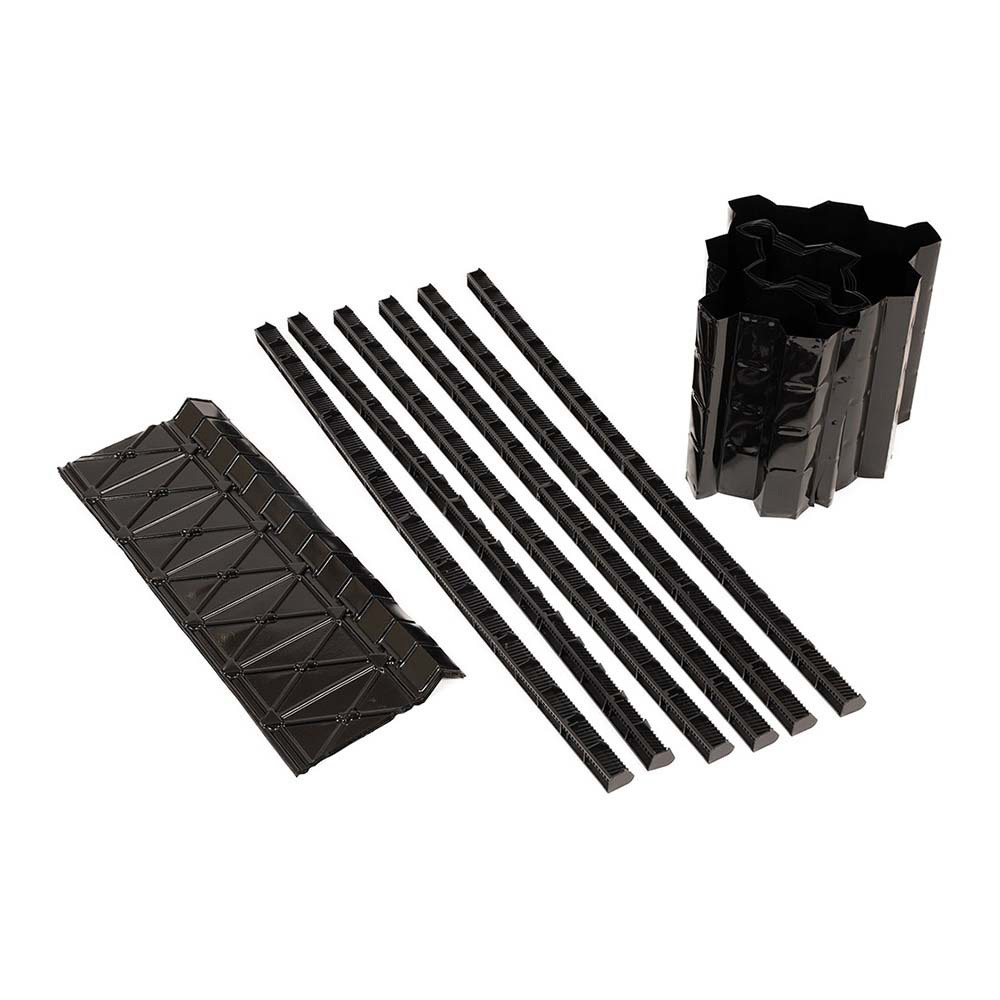 This pack works as an easy, durable and economical answer to eaves ventilation. It features all the required parts. Packs for constant eaves ventilation of 10,000mm² and 25,000mm² are available. The 10mm vent measures 1m/500mm x 42mm wide x 25mm deep, the underlay support tray is 265mm wide, and the roll out rafter tray is 6m x 300mm wide.