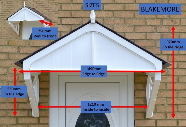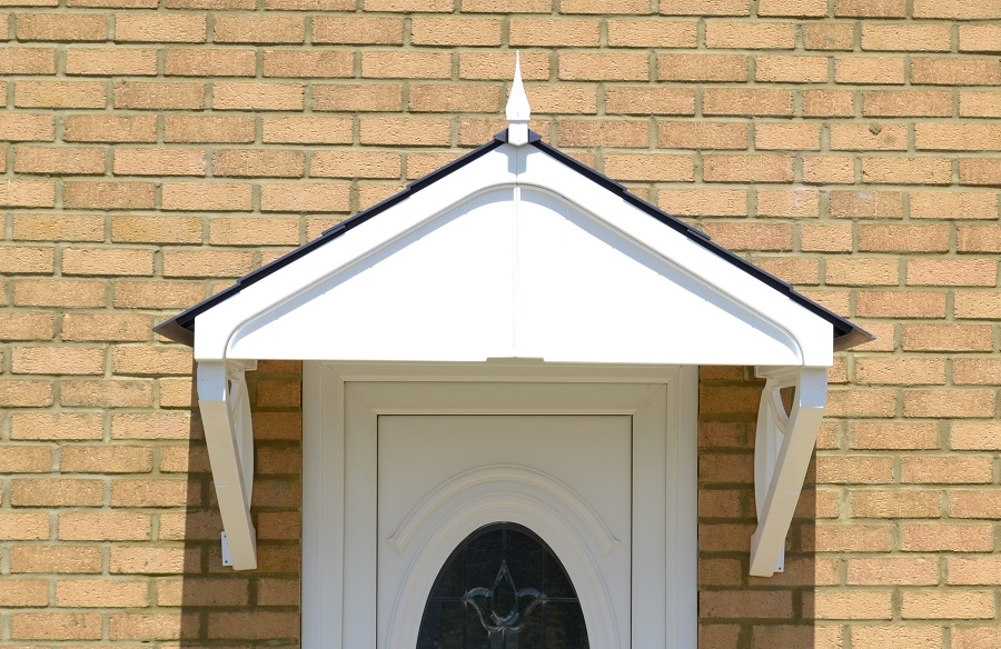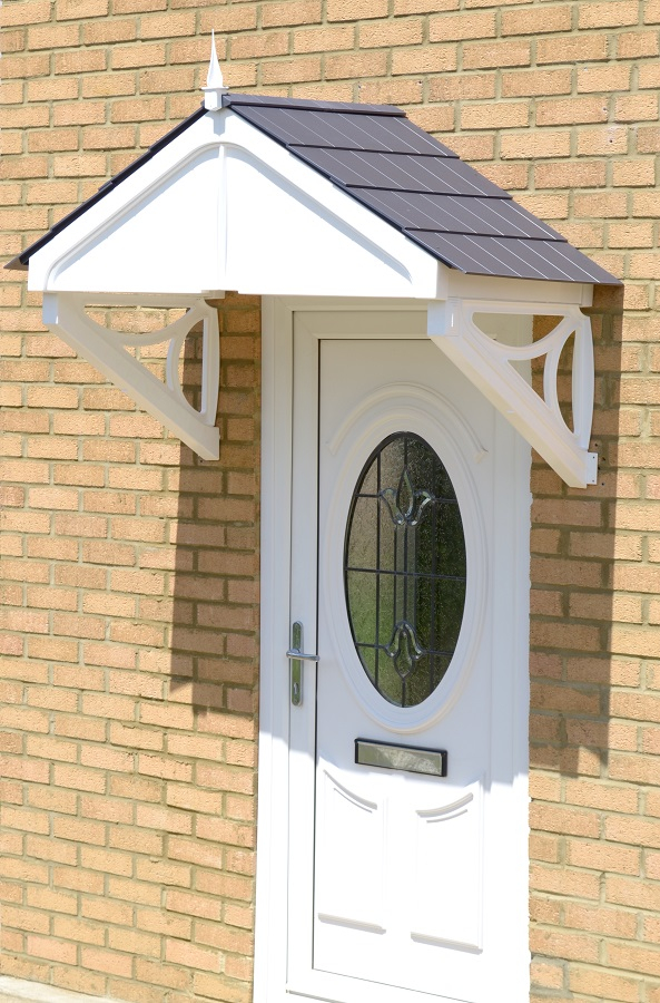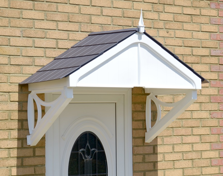 The Blakemore Apex Canopy design incorporates a solid front panel to the Apex and the side gables feature a Victorian cast decorative bracket feature. The Roof is finished with a small finial to add that final touch.  Available with a choice of colour scheme options.