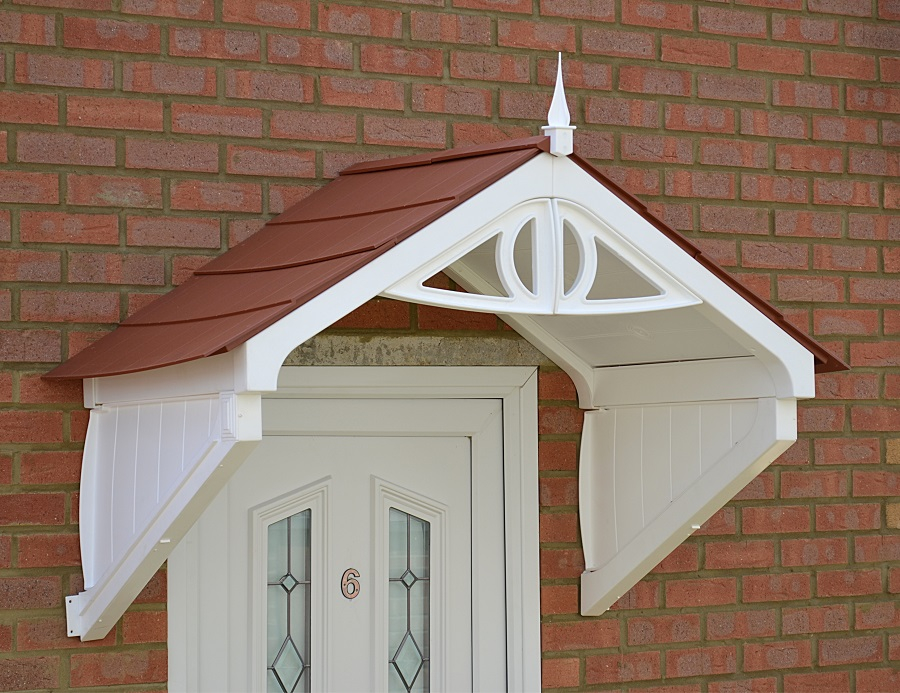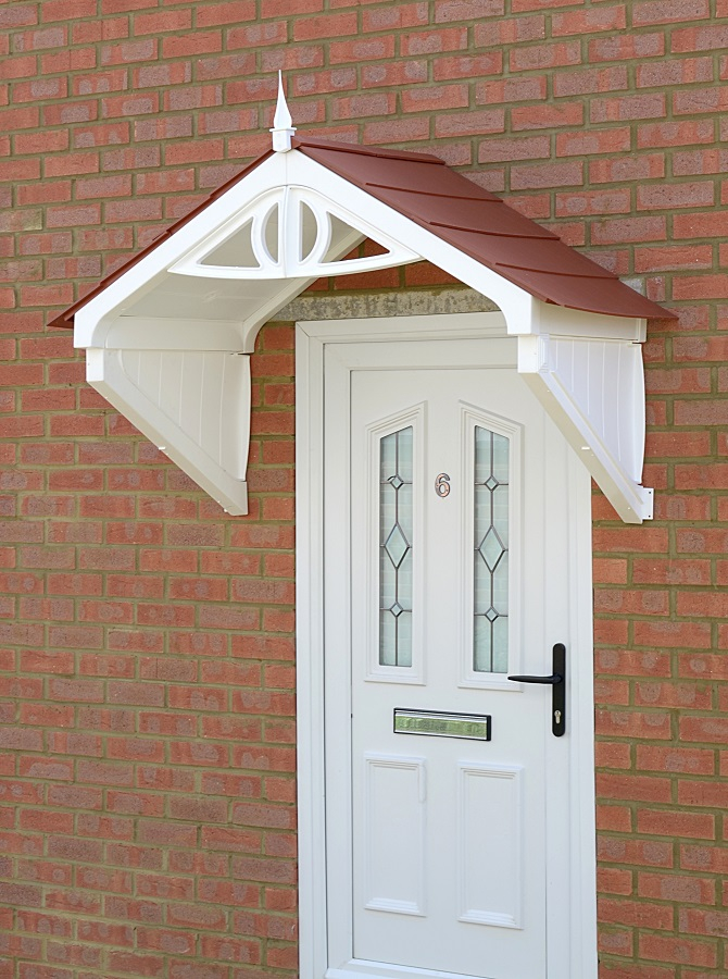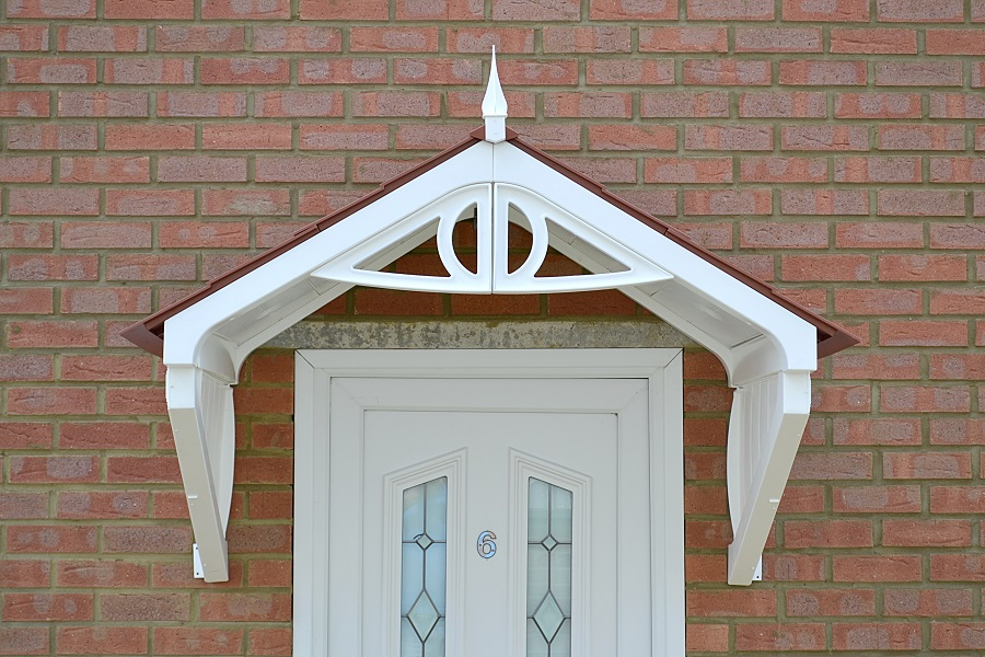 The Clarendon Apex Door Canopy incorporates a modern twist on a classic Victorian design. Solid side gables in a panelled effect support the Apex which incorporates a front panel design with symmetrical styled Victorian influenced front panel, topped with a finial.
