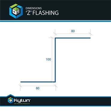 Z shaped flashing for between cladding. This flashing from Kytun is manufactured from aluminium and has a polyester coating.
