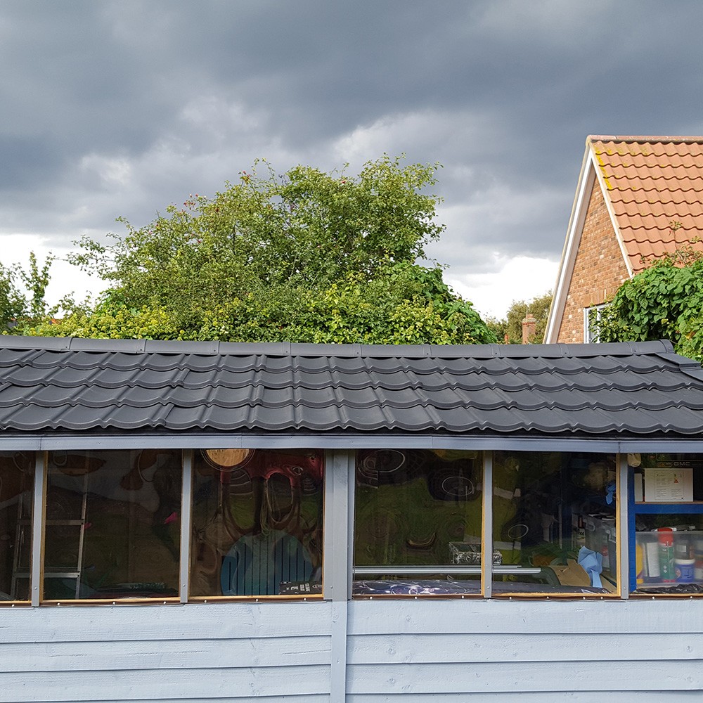 Designed for ease of installation, these tiles are perfect for everything from new builds to both traditional and non-traditional homes. Suitable for over-roofing materials like asbestos, felt, or industrial sheeting. Their versatility extends to applications such as carports, porches, sheds, conservatories, garages, stables, outbuildings, and summer houses. Thanks to their ultra-lightweight design, they are well-suited for DIY projects and can be installed directly over existing roof structures, including prefabricated roofs like polycarbonate conservatory coverings or felted shed roofs.