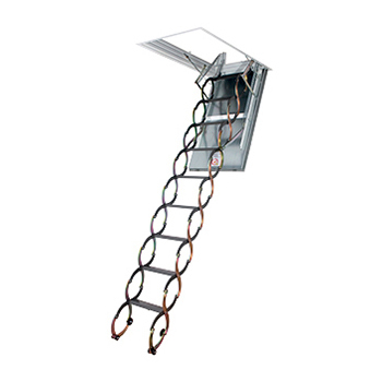 A fire-resistant scissors ladder LSF providing easy and safe access to the loft while, at the same time, providing a fire block during a fire inside the building. It protects against fire and smoke expansion turning the space into a fire free storey allowing precious time while awaiting the fire brigade.