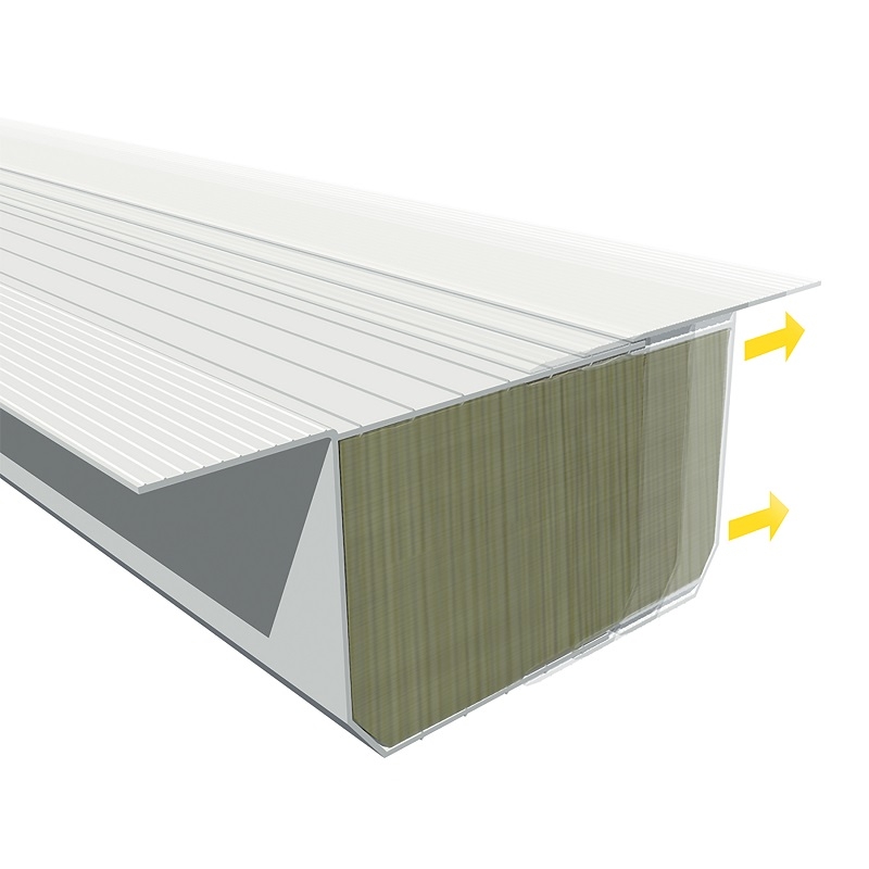 The unique compressible clip feature allows the product to expand within the cavity creating a continuous seal to any varying width. The enclosed box design incorporates a fibre insulating core which provides an economical solution to cold bridging acting as a thermal cavity closer, DPC and half hour fire barrier.