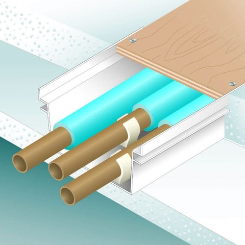 Perfectly suited for managing internal runs of cables and other services, this Manthorpe Pipe and Cable Ducting is specifically designed for up to two pipes in concrete screed floors. You can prevent any risk of distortion by tactfully staggering the cover board joints to avoid coinciding with duct joints.