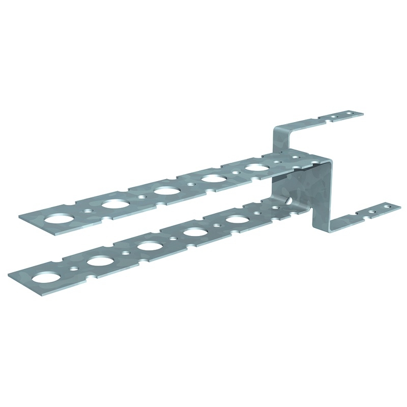 These brackets accommodate a single length of 25 x 38mm batten. For correct installation, place one bracket at the apex of each rafter along the ridge. Secure the bracket to the rafter using nail holes on both legs. Use a minimum of two 30mm-long stainless steel annular ring-shanked nails to fasten each leg.