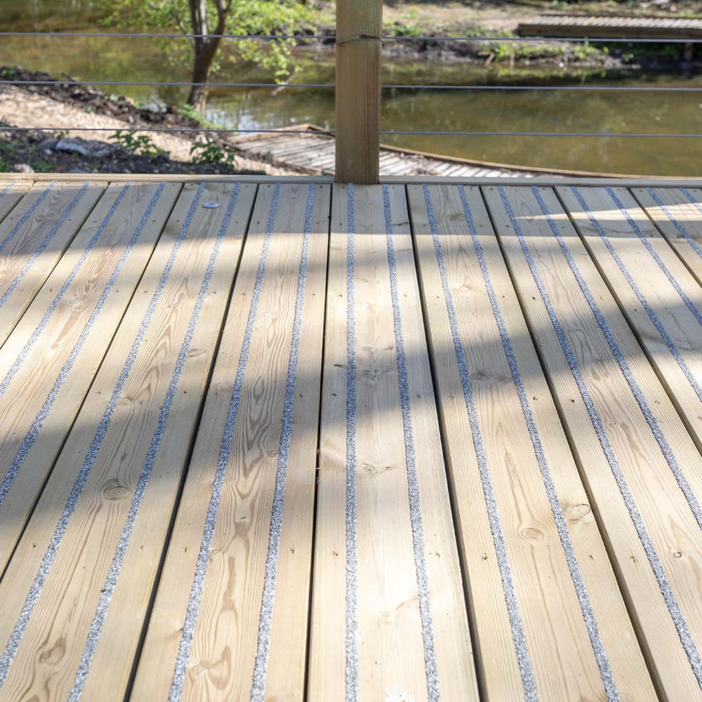 Constructed from sustainably sourced PEFC FSC-certified timber, Marley's AntiSlip Plus® decking is handmade in the UK and enhanced with anti-slip technology to ensure you can enjoy your decked area all year round, even when it's wet. Recommended for use in public access or where there is an anticipated high level of pedestrian traffic, including stairs and ramps.