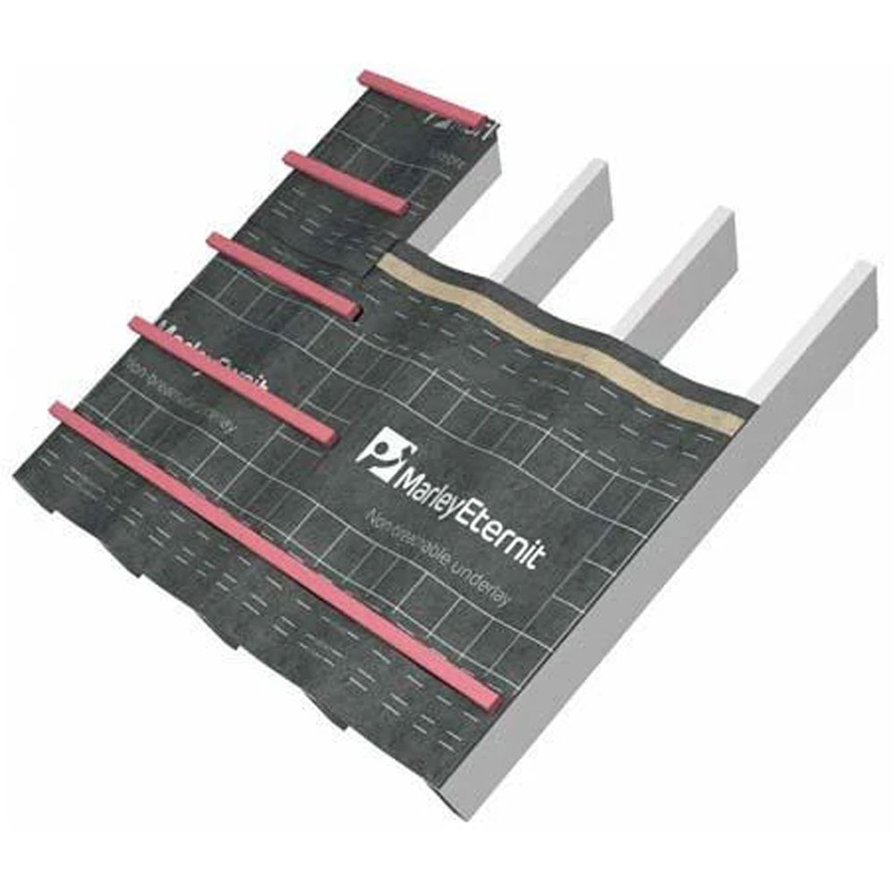 Engineered as a high-performance roofing membrane, this Marley Universal Non-Breathable Underlay suits a variety of pitched roof constructions where conventional ventilation methods are preferred. Comprising a three-layer composite of two spun-bonded polypropylene fabrics and a non-breathable polyolefin film, it delivers superior strength, durability and ease of installation, catering to warm or cold roof applications.